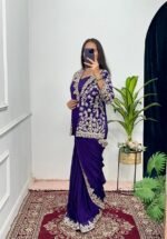 Ready To Wear Saree & Koti Set For Women Bollywood Style Chinon Silk Fabric On Embrodery Sequance Cording Work