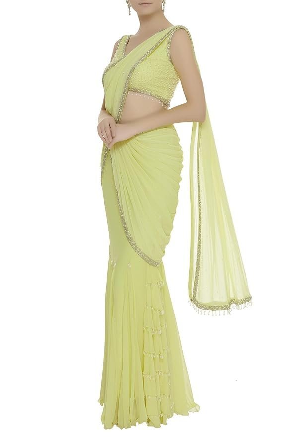 Saree Trends Women’s Faux Georgette ready to wear Frill saree with unstitched blouse