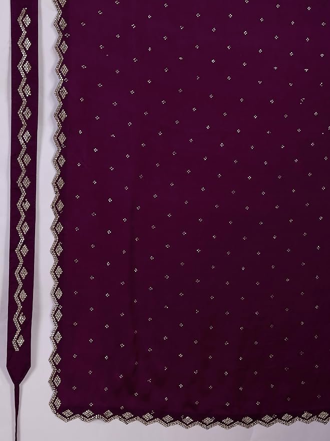 Women’s Satin Georgette Siroski Work Saree with Blouse Piece